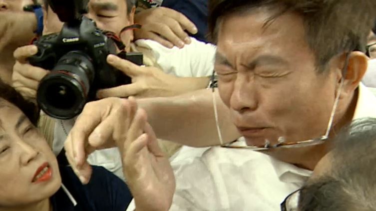 礦泉水直接潑出去,立法院因為李進勇人事案,再度上演大亂鬥。