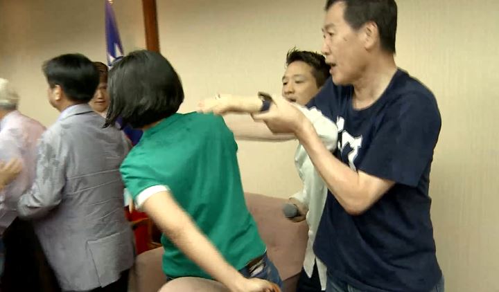 民進黨立委何志偉 vs.國民黨立委費鴻泰:「唉唉唉,不要打人喔,不要推我喔。」