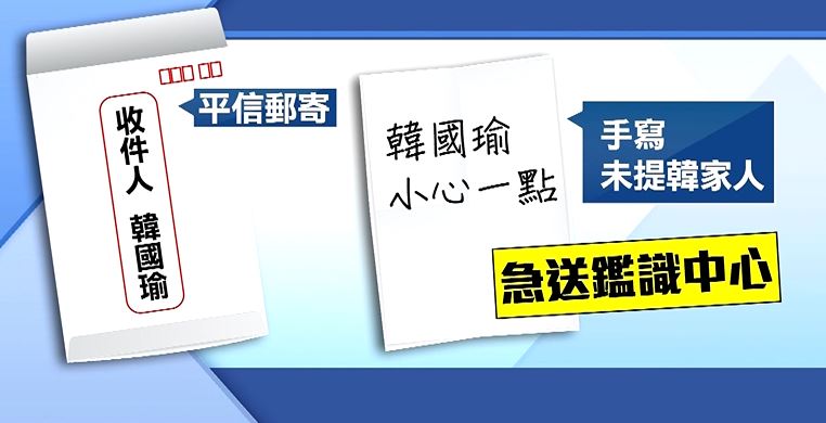 東森新聞記者陳昭谷:「警方表示,除了網路上嗆聲殺韓的留言之外,還有一封手寫的恐嚇信,是由像這樣白色信件裝著,寄送到高雄市的四維行政中心,指名要給韓國瑜市長。」