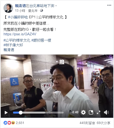 賴陣營搞行銷,FB放上片段,想看完整版請到新開張的IG。