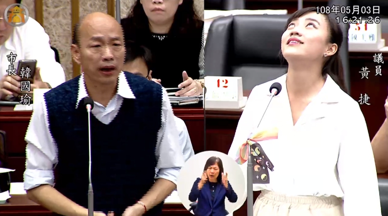 ▼韓國瑜日前接受質詢時被黃捷翻白眼,引發熱議。(圖/翻攝自高雄市議會直播)