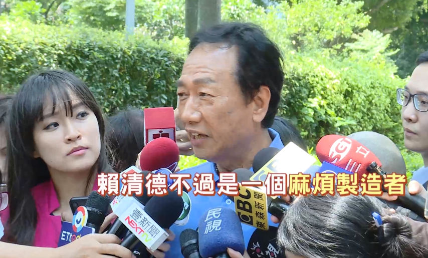 民進黨總統初選參選人賴清德:「從以前到現在,沒有人稱我是麻煩製造者,如果有的話,就是中共的政權而已,其實郭台銘先生的麻煩是他自己造成的。」