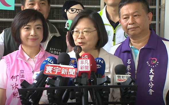 夾道歡迎總統蔡英文到台中,連跑4間廟,現場的熱度也反應在民調上,在新聞與風傳媒的對比式民調中,蔡英文跟賴清德只差0.5個百分點,同時在三方競逐中,可以力壓柯文哲。