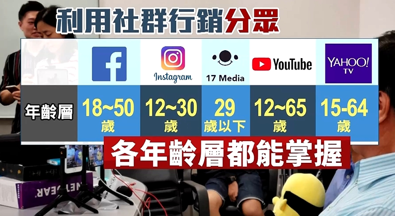 要宣傳市政當然就要有效果,韓國瑜也很懂得利用社群行銷分眾的概念,像是使用臉書,民眾大約落在18到50歲,IG使用民眾約12到30歲,而17直播通常在29歲以下,YouTube年齡層最高可以來到64歲,也就是說透過5個平台,韓國瑜就能掌握各大年齡層的收視群。
