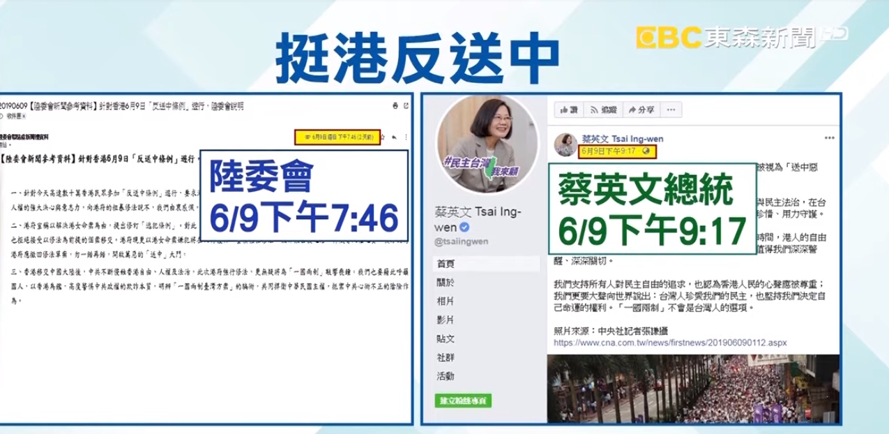 高雄市長 韓國瑜:「再一次呼籲香港朋友,不要因為我晚了幾個小時發文就太情緒性,所以我才點出來,包括我們的陸委會都是晚上7點才發文,我們的總統府晚上9點才發文,如果我晚了幾個小時發文,請香港朋友們理解,絕對不代表說我們不關心香港。」