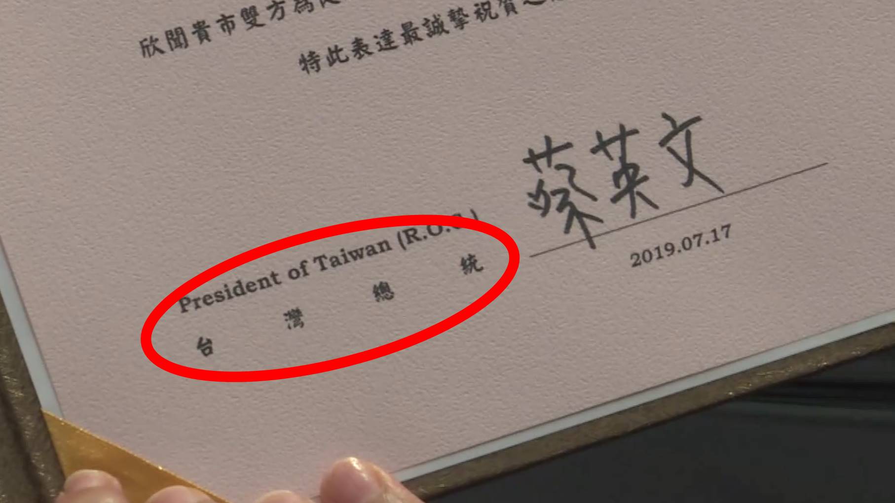 總統蔡英文即將出訪友邦,並且首次過境紐約前夕,美國國務院宣布通過對台軍售送上大禮,凸顯台美好交情。不過宜蘭市與美國締結節姊妹市的文件,蔡總統簽署「台灣總統」引發爭議;總統府強調,這份文件是賀文,非官方正式文件,官方正式文件署名都是中華民國台灣總統,要外界不要過多政治解讀。