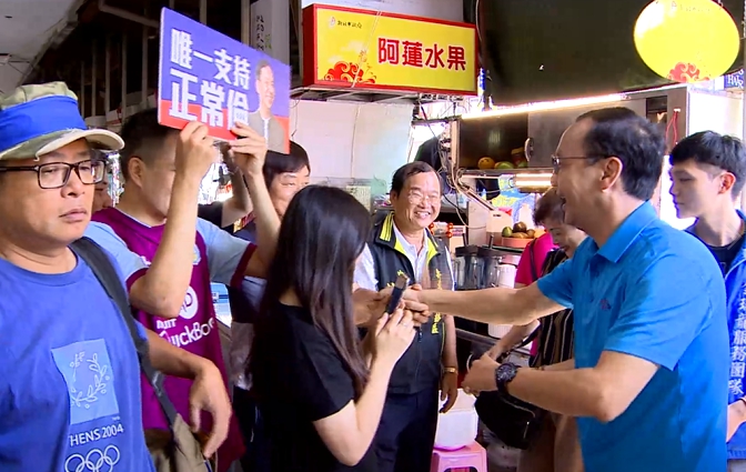 ▼朱立倫受到支持民眾熱情歡迎,努力奮戰到最後一刻。(圖/東森新聞)