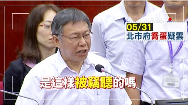 台北市長柯文哲(5.31):「我台北市政府,今天是很明白的被竊聽,我台北市政府,是這樣被竊聽的嗎。」