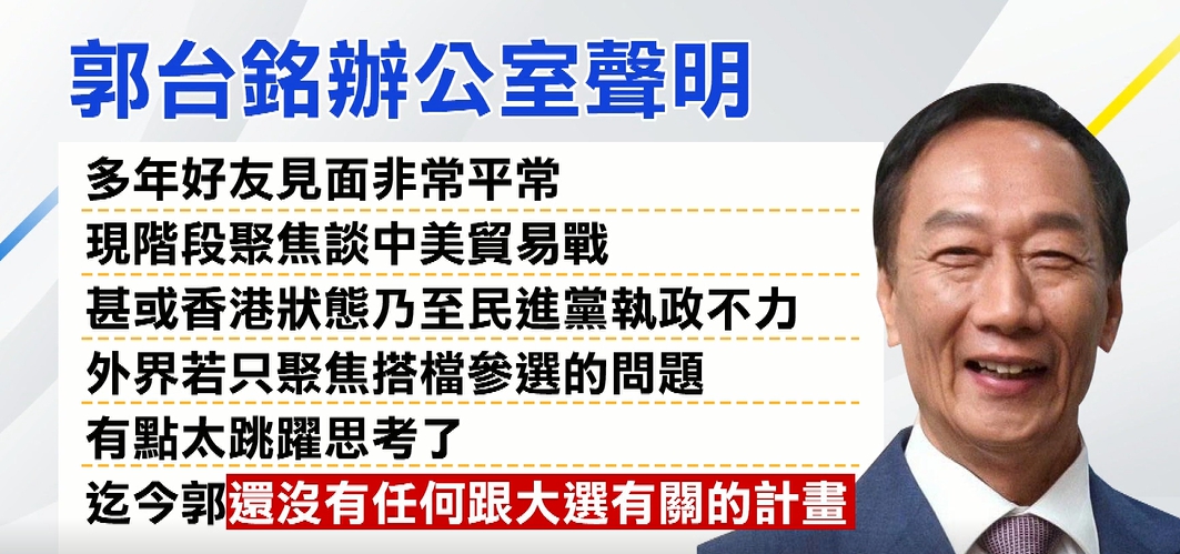 ▼郭台銘辦公室聲明,目前沒有任何與大選有關計畫。(圖/東森新聞)