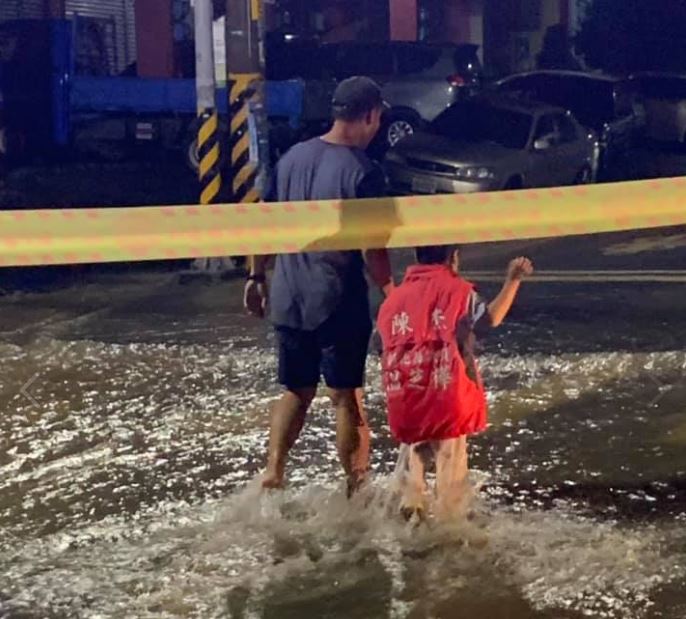 超暖畫面!中南部近日受西南風影響,強降雨不斷,彰化各地飽受淹水所苦。16日深夜,有著「彰化高嘉瑜」封號的縣議員溫芝樺和前立委陳杰前往花壇鄉勘災。當時一位阿公帶著孫女準備回家,但女孩沒穿雨衣全身濕,冷到在一旁發抖,溫芝樺不顧自己沒穿雨衣,趕緊脫下背心讓女孩穿上保暖,並直接告訴她不用還了!