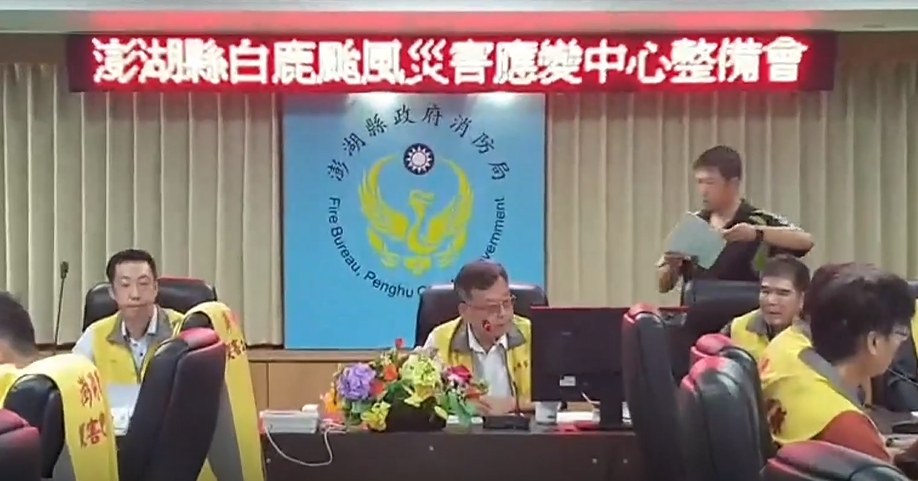 澎湖縣長賴峰偉:「因事制宜,而且各單位該做什麼事都會分配得宜,所以請中央蘇院長放心,澎湖一定會把防颱視同作戰。」