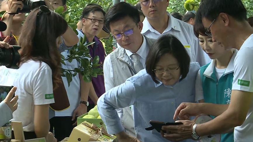 品嘗文旦吃得好開心,總統蔡英文在生日這天來到台南,心情感覺非常好,被問到有沒有什麼願望,只希望國家能夠更好。
