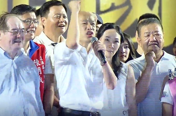 國民黨總統參選人韓國瑜:「民進黨蔡英文選舉,香港人流血、蔡英文補血,讓無能無德的蔡英文,民進黨繼續執政四年,中華民國在退一步就有可能亡國啊,我們全力捍衛中華民國,好不好。」