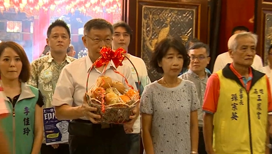 ▼柯P與妻子一同南下到公廟參拜。(圖/東森新聞)