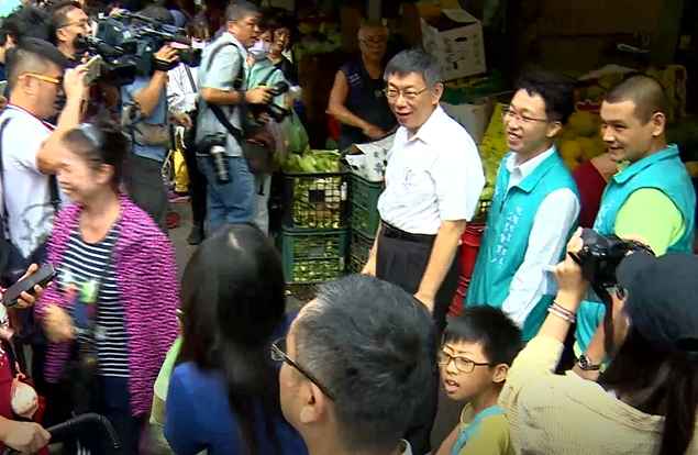 ▼柯文哲假日帶著桃園提名的參選人掃街拜票。(圖/東森新聞)