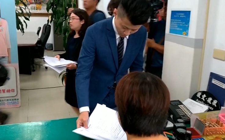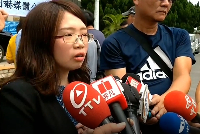 律師還舉出兒皇帝這個名詞,認為這是惡意詆毀的形容詞,但才講到一半,第一波遭告的高雄立委參選人吳佩蓉拿著標語告示跑來鬧場。