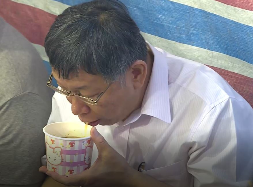 大口吃著肉羹麵,才剛結束市政行程,趁著午休時間台北市長柯文哲不得閒,東森新聞獨家直擊,他特地趕來大安區延吉街上的台北火聖廟,出席祈福法會。