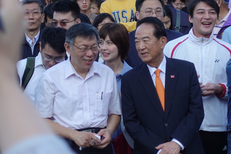 台北市長柯文哲與郭台銘、宋楚瑜今(10日)共同出席在市府廣場舉辦的升旗典禮,郭台銘說,已不選2020總統,不會與宋楚瑜合作,也不會組黨,全力與柯文哲衝國會席次。