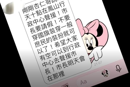 韓國瑜支持者有備而來,大家連忙否認,但前一晚韓家軍群組就有人留言,指名杏仁哥說市長要請假,希望大家有空到市政中心聲援,果不其然,15日早上記者會前,不少支持者走到哪直播到哪,穿梭在記者中,看起來像盯場。