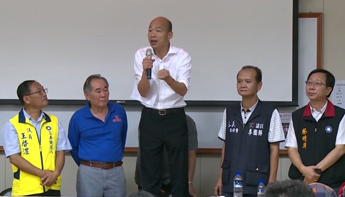 國民黨總統參選人韓國瑜:「升旗台這個是一定要的謝謝,我覺得不是光台灣3千公尺上的高山,好幾百座,我們盡量來做。」