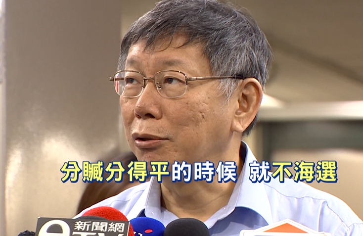 台北市長柯文哲:「不過民進黨是這樣子啦,分贓分得平的時候就不海選,分贓分不平才海選是這樣子 。」