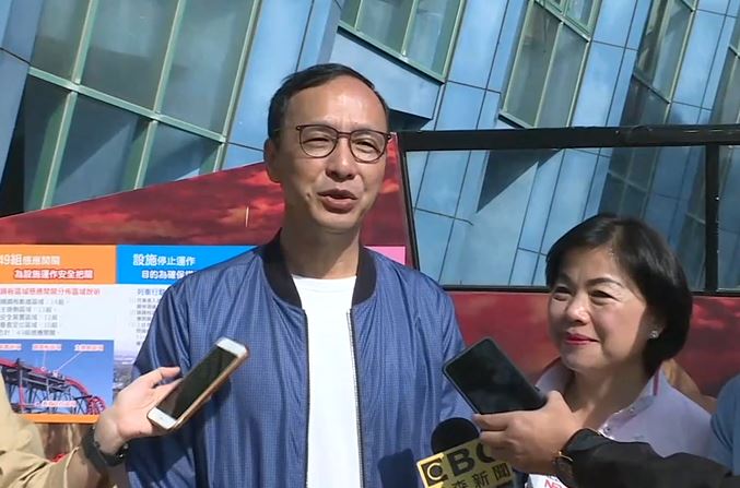 前新北市長朱立倫,甩開一切包袱,在國內首度搭雲霄飛車。