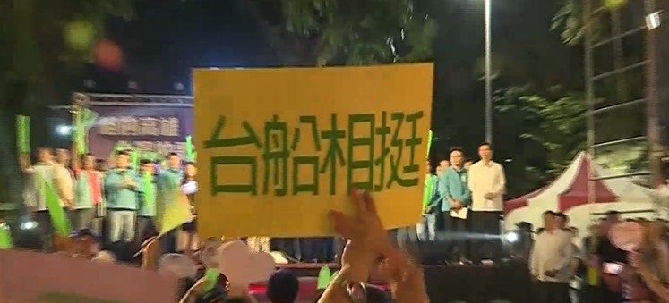 被蔡英文點到名,台船支持者好熱情,揮舞手上的看板上頭寫著「小英連任,台船相挺」。