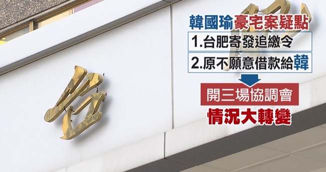 針對韓國瑜豪宅風波案,民進黨立委林俊憲開記者會,說要幫韓國瑜「恢復記憶」,因為他拿到協調紀錄,懷疑是韓國瑜等人找民代向台肥施壓,讓原本追款的台肥,態度「翻車式轉彎」,改成願意貸款。另外當年台肥陸續借款約13億元,沒有紀錄,也沒送董事會討論,要求農委會要調查清楚。