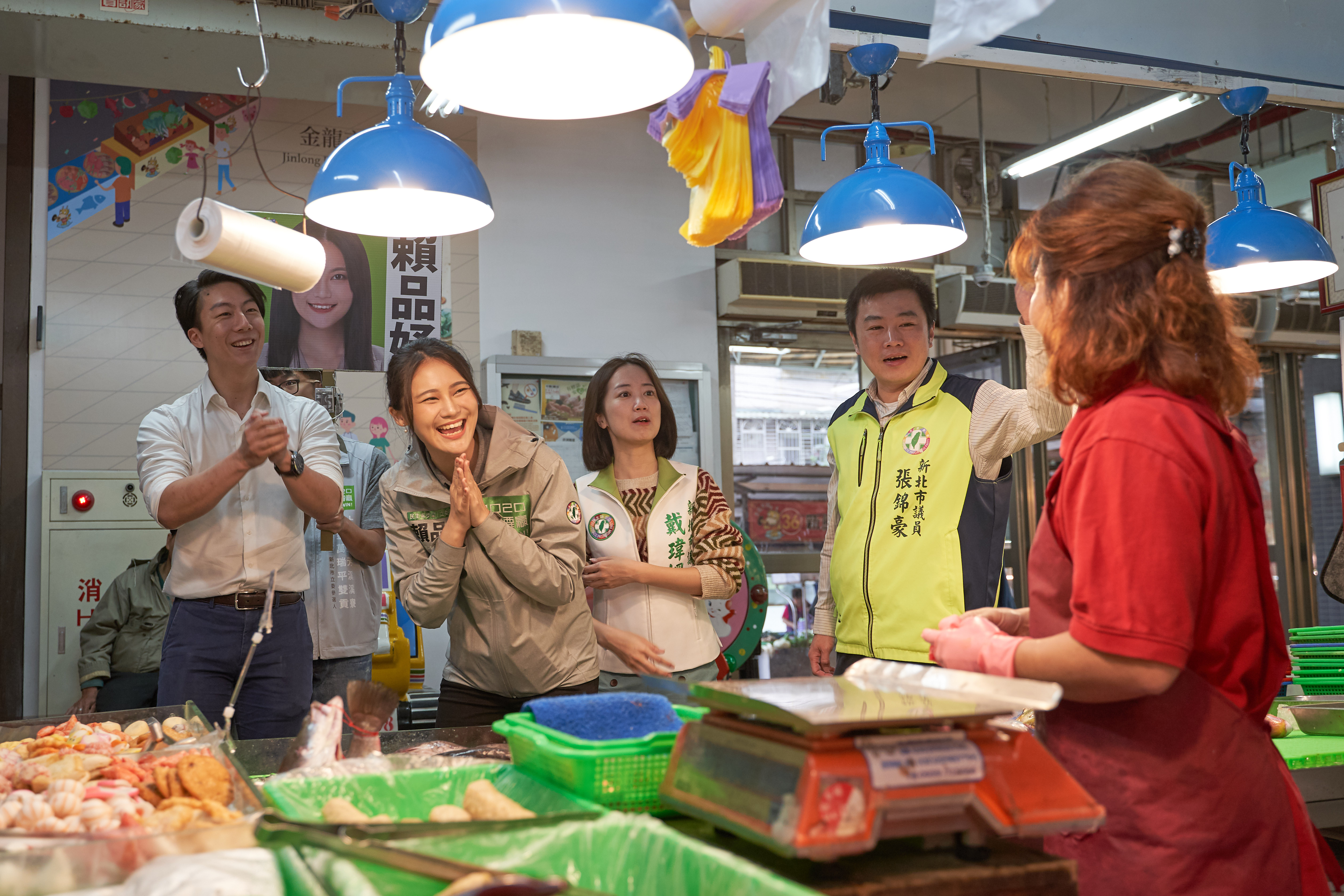 太陽花戰友合體!代表民進黨參選新北市第12選區立委、對戰黃國昌子弟兵的賴品妤,今(21)日前往汐止金龍市場掃街拜票,而共同參與太陽花運動的前時代力量發言人吳崢、新北市議員戴瑋姍也陪同她掃街,眾人高喊「2020台灣要贏!」