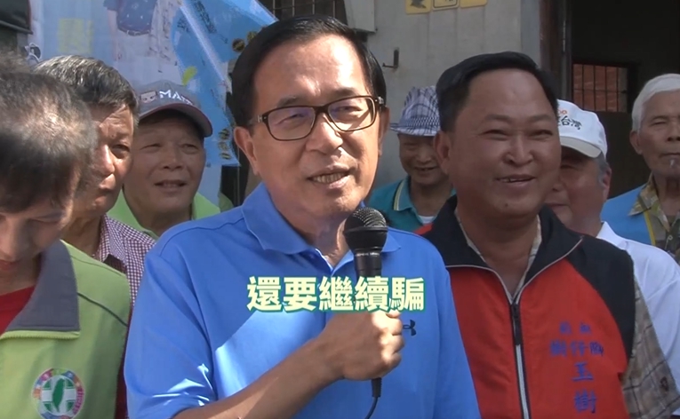 前總統陳水扁:「宋楚瑜由58歲,騙到78歲,還要繼續騙,他不嫌煩,阿扁早嫌煩了,還有那種,2000年和阿扁一起選總統,選到現在2020年,還要選第5次,為了什麼。」