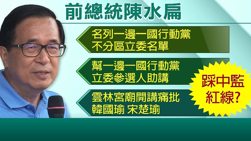 前總統陳水扁保外就醫,不止名列一邊一國行動黨的不分區立委名單,還到處趴趴走開講,中監表示,扁行程有報備,是否踩紅線持續有掌握。