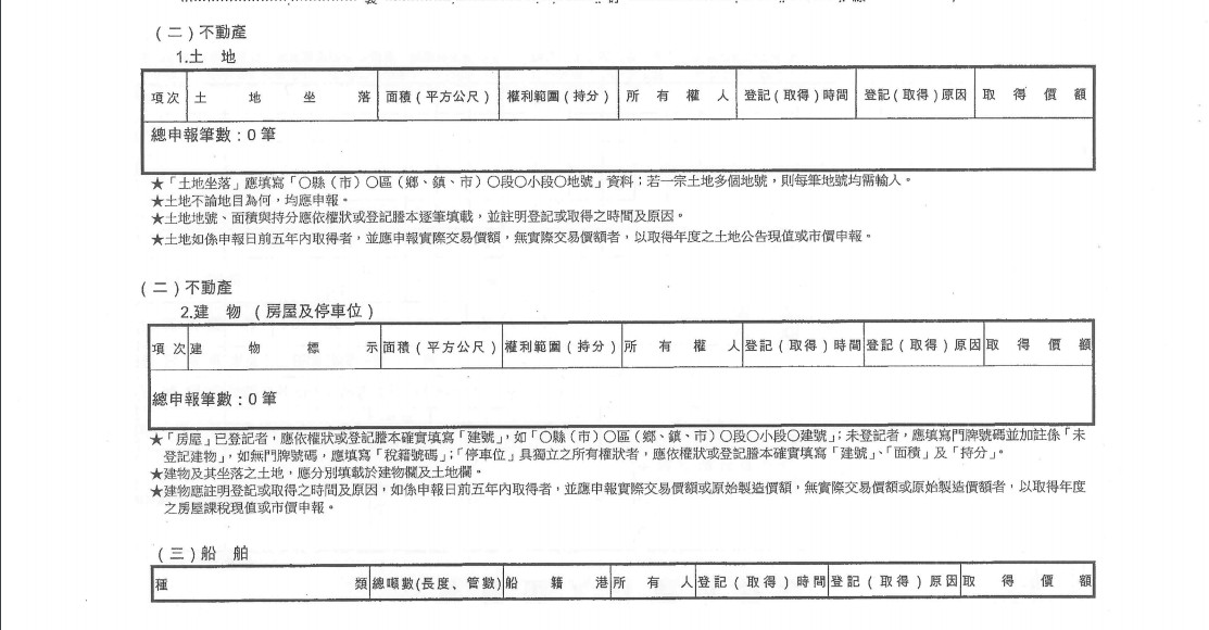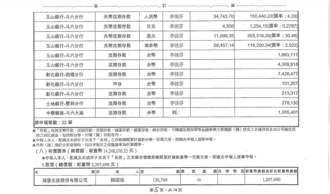▼中選會公布的韓國瑜夫妻財產申報。(圖/中選會)