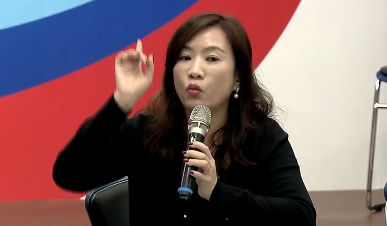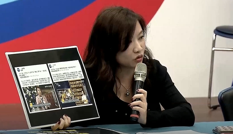 韓辦發言人王淺秋:「那我可不可以順便提醒一下,其實在我們查到的資料裡面,也有三立新聞下特別推播廣告,下的都是韓黑的新聞,特別推播攻擊韓國瑜的新聞,我想可能是也要謝謝我們一起帶給貴台流量。」