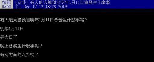 ▼2020年大預言出爐,網友爆1月11日會發生這事!圖/PTT