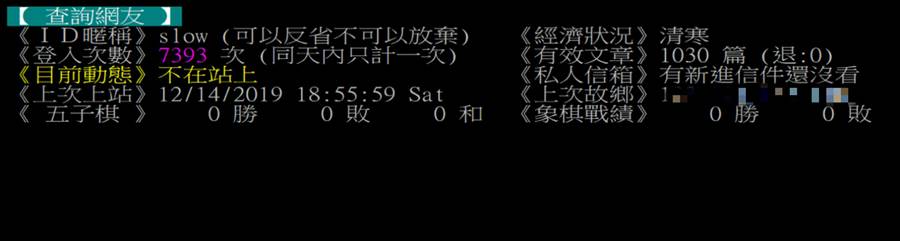 根據《中時》報導,楊蕙如PTT主帳號「slow」最後一次登入在去年12月14日,也就是被檢調起訴後的兩個禮拜,而在此之前,楊蕙如最後一次登入PTT是8月16日。另一方面,民眾黨上午在黨部舉行「2020台灣重開機」元旦記者會,柯文哲接受媒體聯訪、被問及日前專訪曾說若民進黨對他出手,最後一秒將表態支持國民黨總統候選人韓國瑜時,主動表示政風處已將楊蕙如案調查完畢,他已在公文上蓋章。
