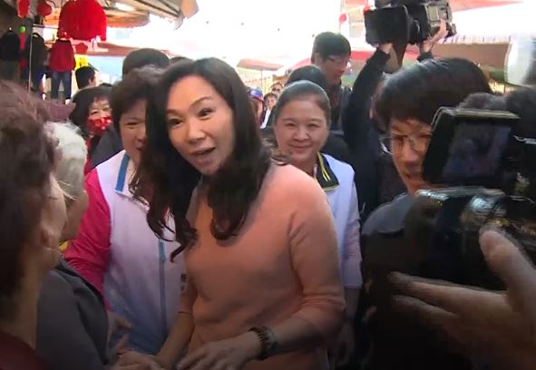 好久不見的佳芬姐,出現在南投水里菜市場,婆婆媽媽們很激動,搶著握手 開心合照,李佳芬被支持群眾包圍,現場氣氛相當熱絡,也看得出李佳芬,心情還不錯。