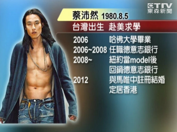 馬英九前總統長女馬唯中私生活相當低調,直到2013年初才被爆出與哈佛學長、時尚男模蔡沛然結婚,才掀起各界注目。據悉蔡沛然出生台灣、移民美國,擁有香港永久居留權(持有香港身分證),婚後任職香港金融界。如今小倆口結婚7年,馬英九當外公了,馬唯中4日下午在三軍總醫院剖腹產下1名健康男寶寶,馬英九當天正在輔選,獲知消息立刻趕往三總探視外孫。