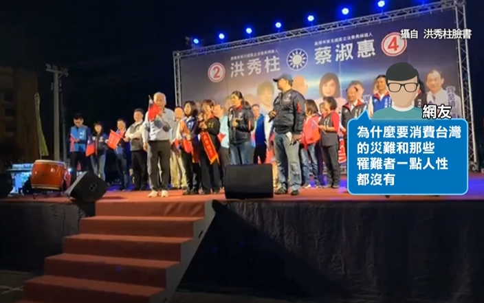 這段講致立刻遭到網友抨擊,為什麼要消費台灣的災難和那些罹難者,真是一點人性都沒有,眼見網路影片持續發酵,洪秀柱趕緊跳出來緩頰。