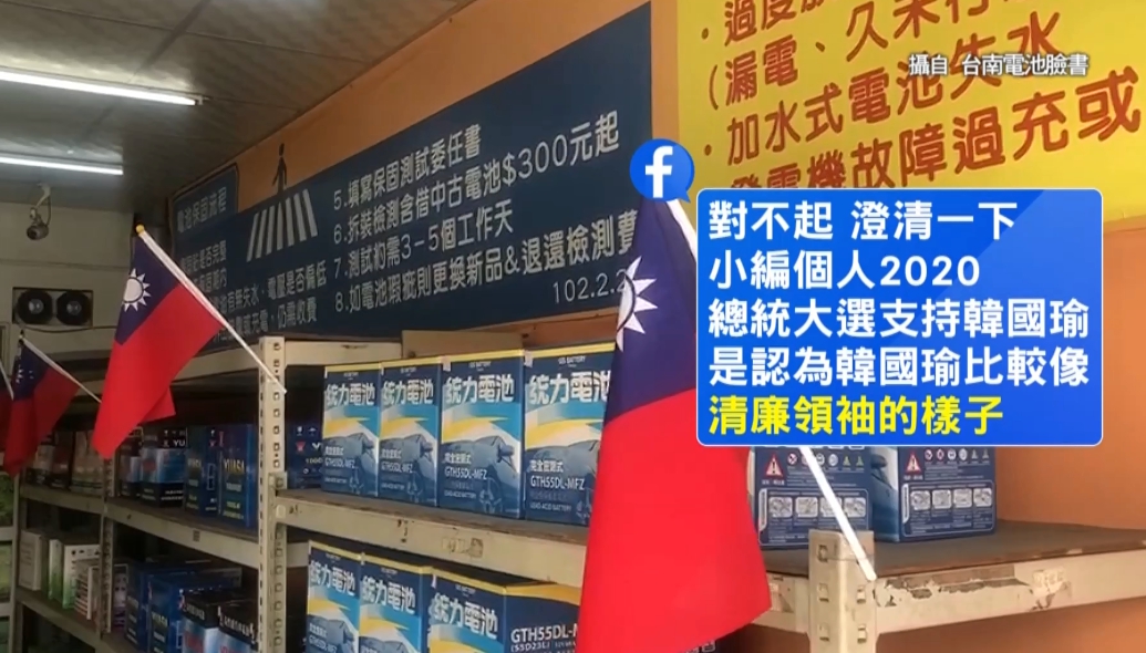 ▼老闆在臉書上回應,認為自己並不是韓粉。(圖/東森新聞/翻攝自台南電池臉書)