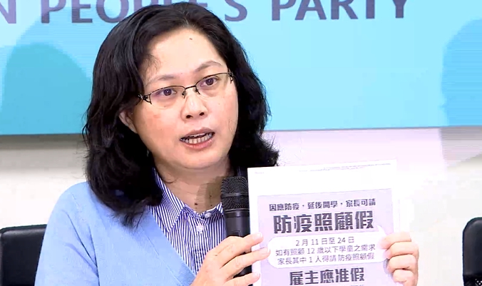 民眾黨立委賴香伶:「非常多的中小企業開始也因為受到防疫狀況,有無薪假,或是產業受到影響狀況,那這個防疫照顧假的第一天,2月11號到24號,那確實我相信家裡有12歲孩童,家長或勞工朋友是不是真的能請也敢請。」