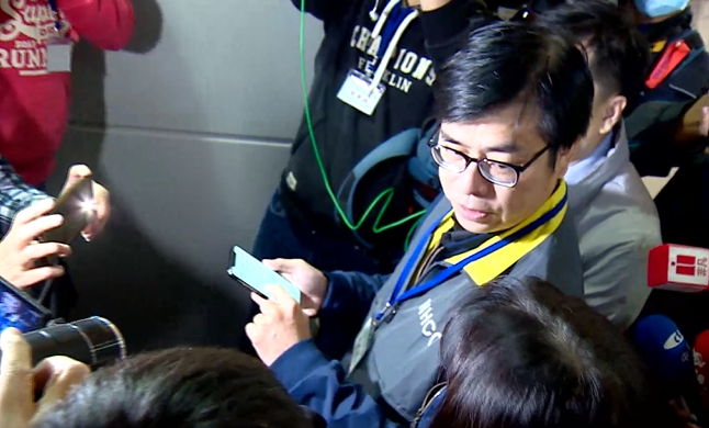 ▼陳其邁試用快速通關的線上版入境檢疫系統。(圖/東森新聞)