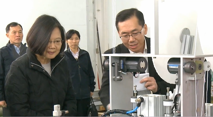 總統蔡英文:「大家都知道台灣人很會製造東西,那麼台灣的產業,台灣的工廠更厲害,但是沒有辦法想像說,原來可以厲害到說,半年的東西25天就做出來了,台灣雖然不大,我們的產業規模也都不大,但是我們集合起來的力量真是嚇死人。」