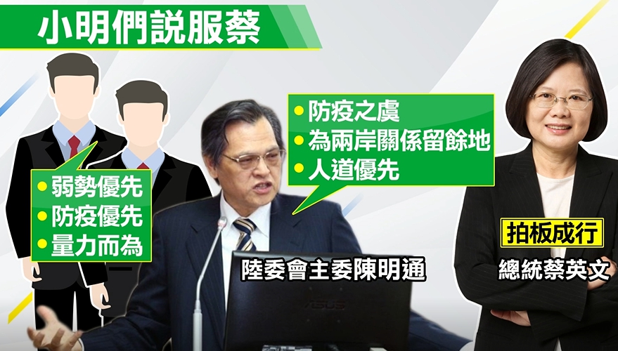 武漢同胞能夠搭上飛機回台的關鍵,除了我國守住橫濱模式底線外,另外小明們也扮演關鍵角色,陸委會主委陳明通就主張防疫之虞,應該為兩岸關係多留餘地,人道優先為考量,加上包機不違背三原則,最後小英總統點頭拍板回台。
