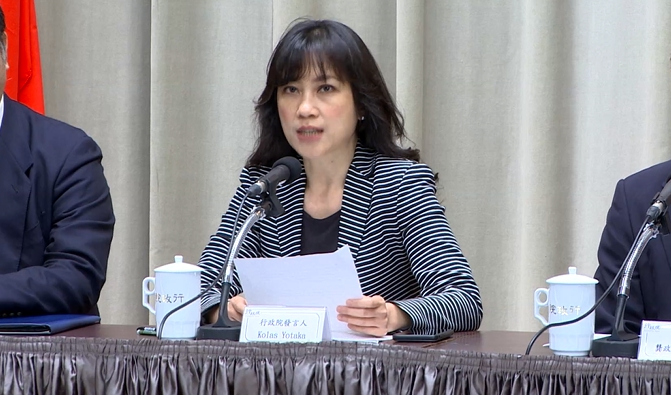 行政院發言人Kolas Yotaka:「防疫工作需要團隊努力,其實我們又從中國(大陸)接回361位國人,院長特別表示,這就是台灣經驗,這是台灣模式。」