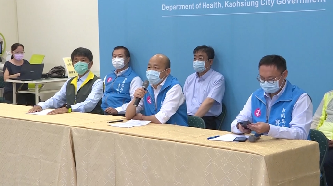 高雄市長韓國瑜,召開防疫記者會,率領局處排排坐,一開口強調引起討論的兵推,會繼續做下去。