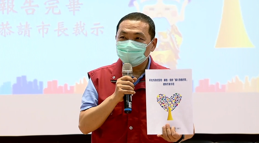 新北市長侯友宜:「這一本紓困手冊,就是我們這次快速作業的葵花寶典,新北審過的金額,已經9千600多萬將近一億元,我相信絕對是審了最多縣市,核了最多金額的縣市。」