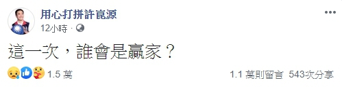 ▼一直以來對韓國瑜十分支持的高雄市議長許崑源就在臉書發文表示「這一次,誰會是贏家」,沒想到才剛發出貼文不久,便傳出他墜樓消息。(圖/翻攝自許崑源臉書)