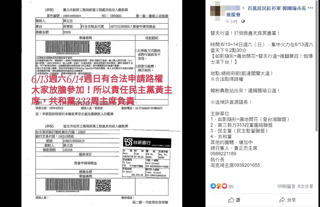 罷韓成功後,和韓國瑜交情深厚的許崑源是在6日晚上9時許從住家17樓墜樓身亡,韓國瑜當晚即前往禮儀公司上香致意,除了對許崑源墜樓身亡表達不捨,也呼籲民眾冷靜。不過挺韓後援會以「替天行道!打倒喪盡天良冥盡黨」為題,號召支持者在13日(六)下午2點30分到總統府前抗議。PO文指出,目前以合法取得路權,希望韓粉們勇敢站出來,還韓國瑜公道,追悼許崑源議長。轄區中正一警分局也證實此事。