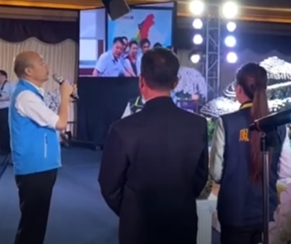 韓國瑜隨後上前,和議長妻子致意,議長妻子哭到站不穩,需要人在一邊扶持,但是她仍向韓國瑜深深的鞠躬答謝,韓國瑜先拍拍她的肩膀,再緊握住她的手要她堅強,同時拍拍她的背鼓勵,並再緊握她的雙臂要她支撐下去,轉身離開的韓國瑜紅著眼眶,隨後他由後門離開。
