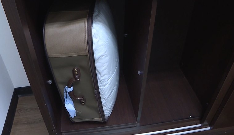 ▼衣櫥裡還放著韓國瑜使用過的枕頭、棉被。(圖/東森新聞)